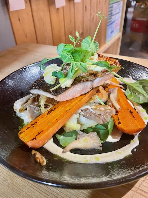 - Le poisson du moment, travaillé selon les arrivages, en cuisson douce ou façon plancha ;